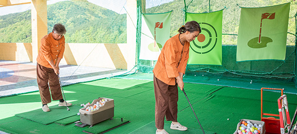 - ◆ 노래치료실 · 종교실(천주교, 기독교) · 탁구장 · 당구장 · 헬스장 · 골프연습장 · 하늘정원 · 편백숲 맨발 황톳길 등 다양한 자연 친화적 시설 보유